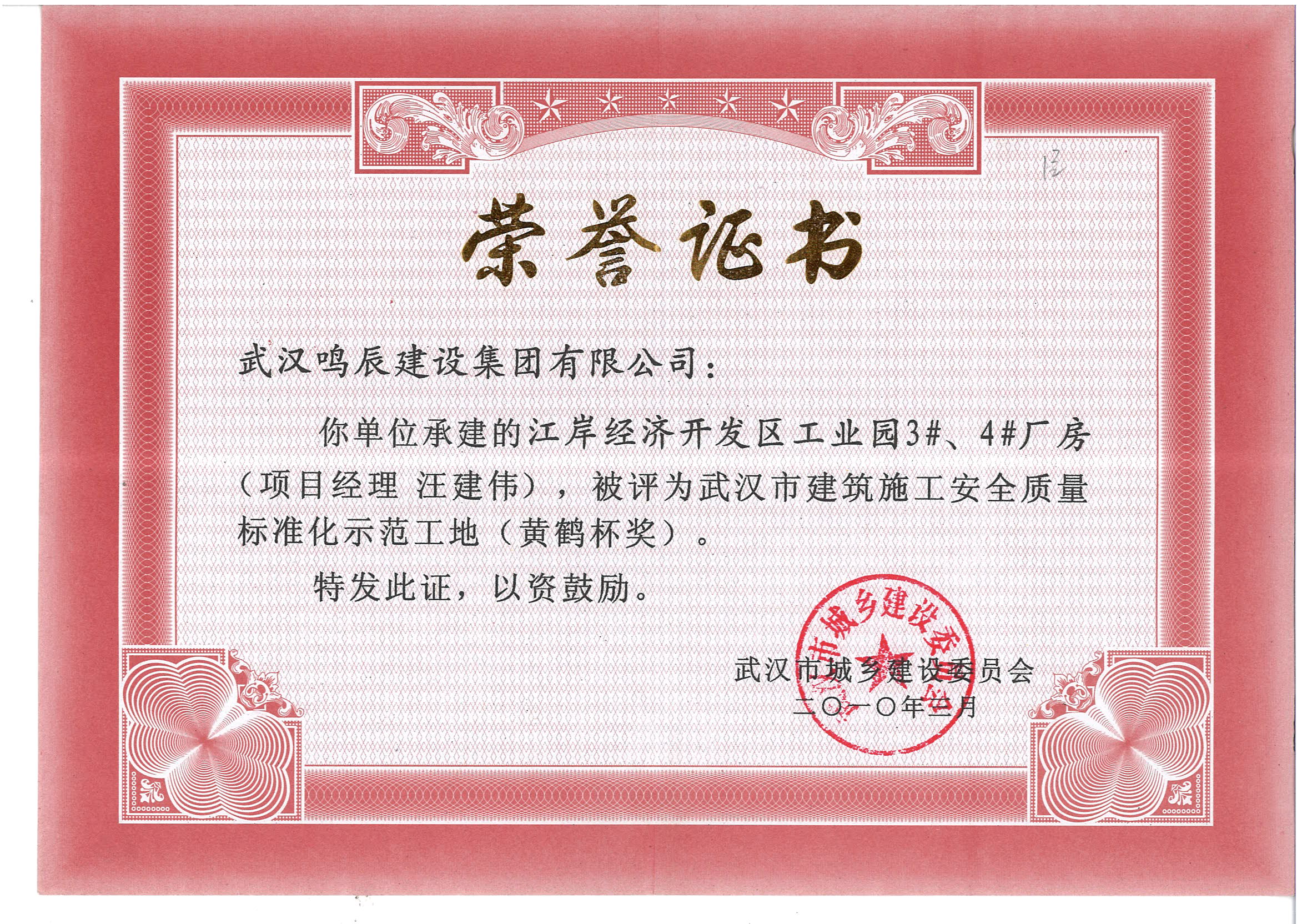 武漢市建筑施工安全質(zhì)量標(biāo)準(zhǔn)化示范工地(黃鶴杯獎(jiǎng))