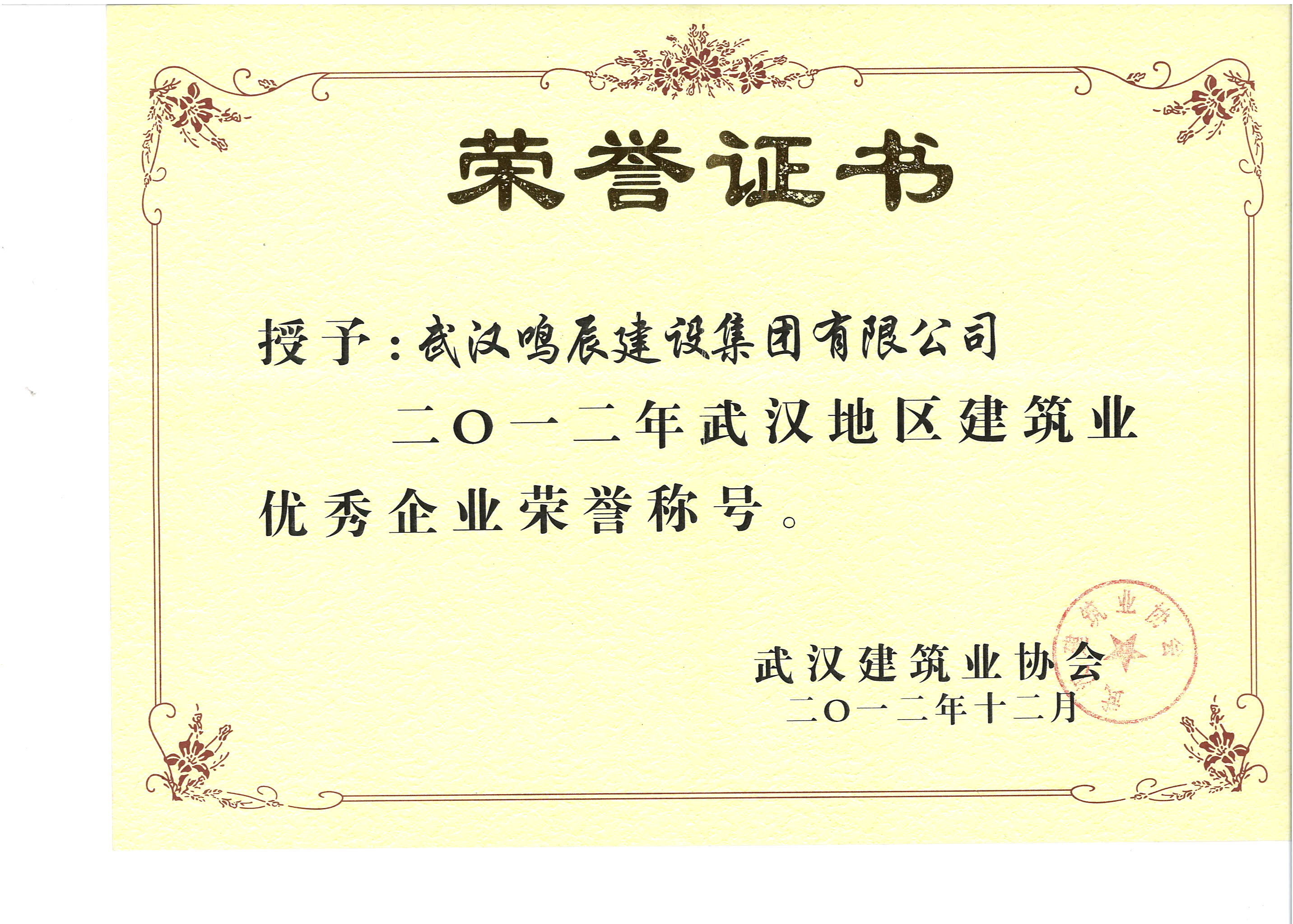 二〇一二年度武漢地區(qū)建筑業(yè)企業(yè)優(yōu)秀企業(yè)