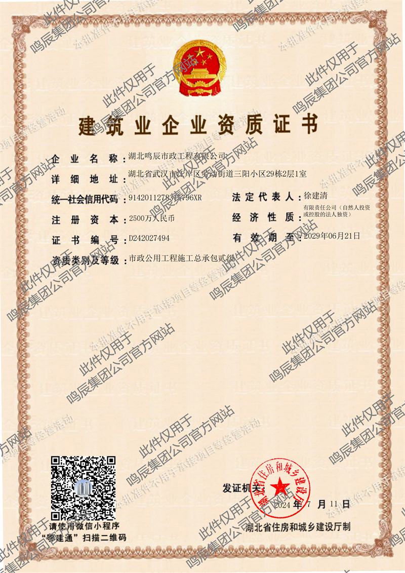 湖北鳴辰市政工程有限公司擁有齊全的市政施工機(jī)械設(shè)備,50余名中級(jí)以上職稱(chēng)的施工技術(shù)人員,技術(shù)力量雄厚,能夠承接各種大中型道路和市政施工的施工任務(wù)?,F(xiàn)為武漢市市政協(xié)會(huì)會(huì)員,已通過(guò)ISO質(zhì)量、安全、環(huán)境管理體系認(rèn)證,先后獲得市先進(jìn)單位和守合同重信用企業(yè),年施工能力20000萬(wàn)元,工程合格率100%,優(yōu)良率95%,為武漢市市政道路、排水、園林綠化、景觀工程、供熱、休閑等工程貢獻(xiàn)了力量,受到政府部門(mén)和業(yè)主單位的好評(píng),業(yè)務(wù)主要承接范圍為城市道路(新建、改建)工程、給排水工程、橋梁工程、綠化景觀工程、公共廣場(chǎng)等工程。近年來(lái)公司承接的代表性工程項(xiàng)目主要有:漢口歷史風(fēng)貌區(qū)特色街巷建設(shè)項(xiàng)目青島路道路整治及花街建設(shè)工程、江岸區(qū)瑞祥路道路工程、三金潭立交東側(cè)公共通道(一期)道排工程、青菱西路(白沙三路-白沙五路)道路工程、園藝二路道路工程、2020年市級(jí)重點(diǎn)改造配套工程(武漢市青少年宮足球場(chǎng)建設(shè)項(xiàng)目)、隨州白云大道第五標(biāo)段、三金潭小路及二環(huán)線(xiàn)橋下節(jié)點(diǎn)周邊整治工程總承包、澳門(mén)金角片城市更新配套建設(shè)項(xiàng)目(一期)設(shè)計(jì)施工總承包等項(xiàng)目。