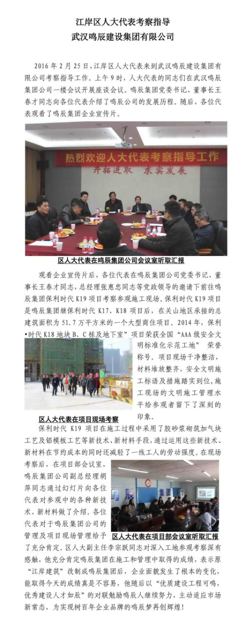 江岸區(qū)人大代表考察指導武漢鳴辰建設集團有限公司