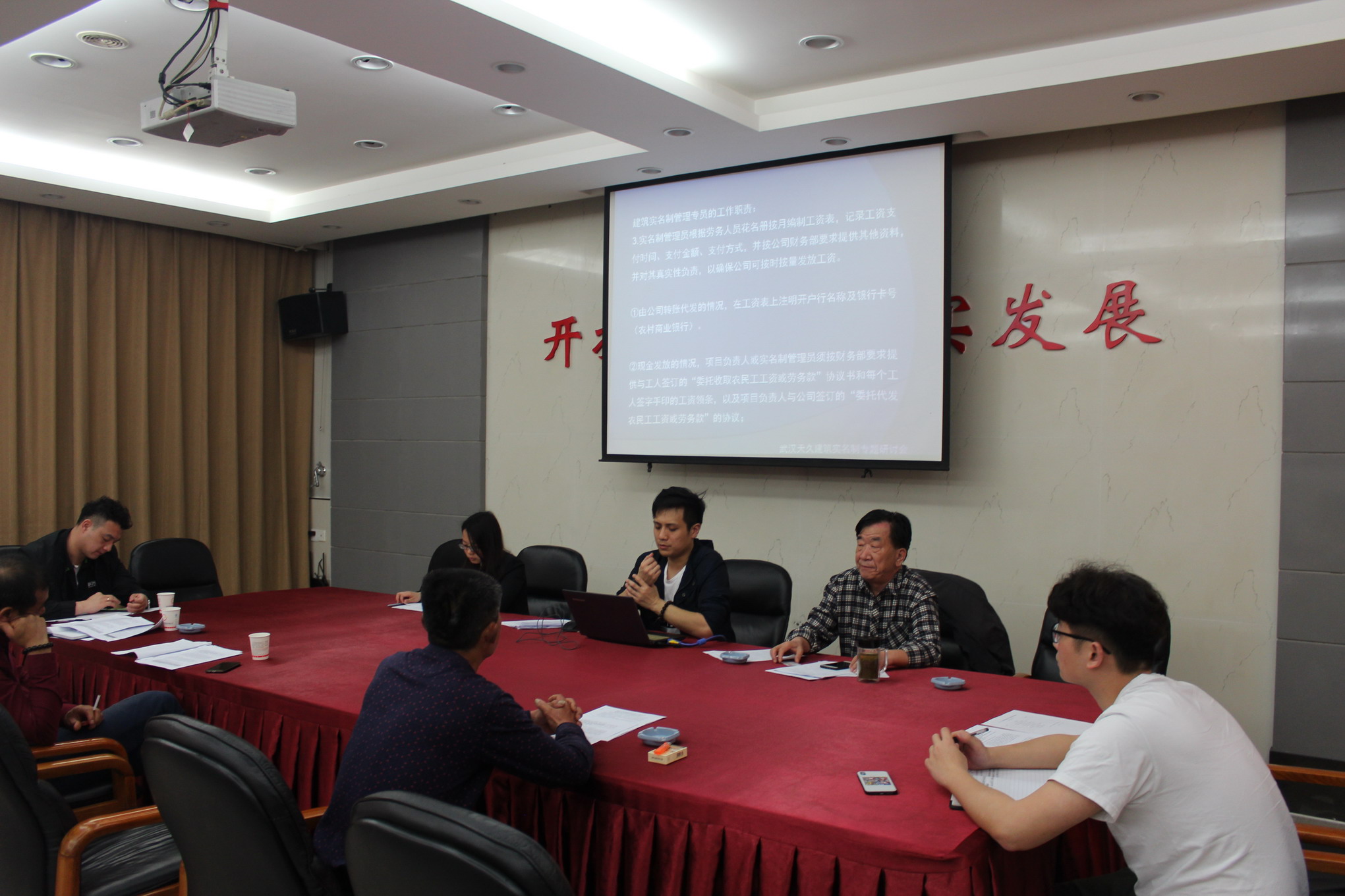 建筑實(shí)名制管理對(duì)建設(shè)方、總包方、分包方的要求均有所不同,作為勞務(wù)公司管理的關(guān)鍵在于班組信息的真實(shí)性及工資發(fā)放的及時(shí)性,會(huì)議上勞務(wù)公司向各位與會(huì)的項(xiàng)目負(fù)責(zé)人發(fā)放了《勞務(wù)公司實(shí)名制管理規(guī)定(試行)》、《個(gè)稅計(jì)算辦法》等會(huì)議有關(guān)文件,并結(jié)合全國(guó)實(shí)名制管理平臺(tái)講解實(shí)名制管理所需的包括“花名冊(cè)”、“工資表”、“特種作業(yè)人員考試報(bào)名”等資料的編制要求,通過(guò)PPT會(huì)議文稿向其展示了上述文件參考范本。同時(shí)還邀請(qǐng)了集團(tuán)公司的財(cái)務(wù)人員就因?qū)嵜乒芾硭鶐?lái)的稅務(wù)管理變化和項(xiàng)目人員個(gè)人所得稅申報(bào)事宜做了專(zhuān)題宣講。