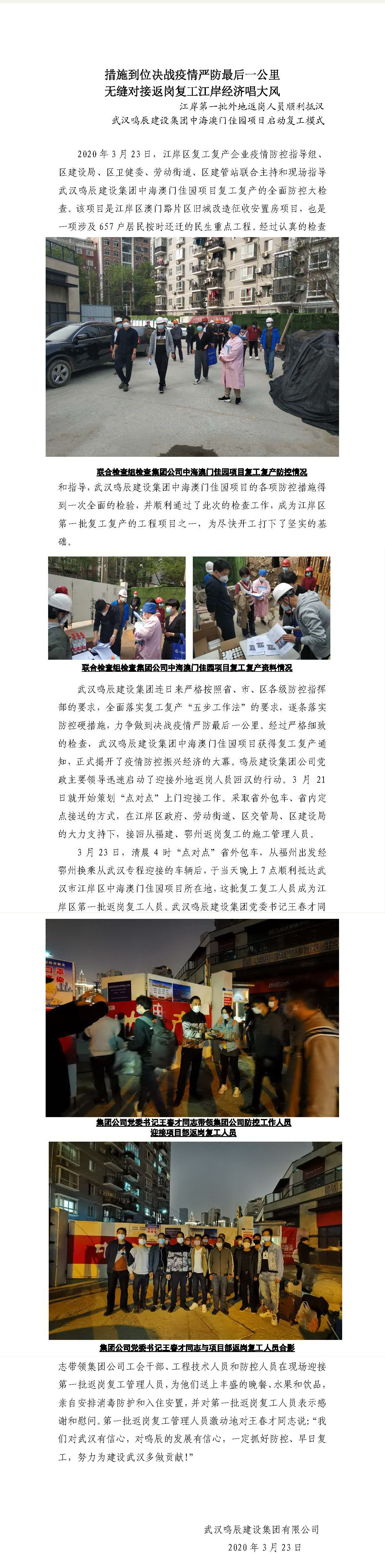 武漢鳴辰建設(shè)集團(tuán)中海澳門佳園項(xiàng)目迎來(lái)第一批返崗復(fù)工人員