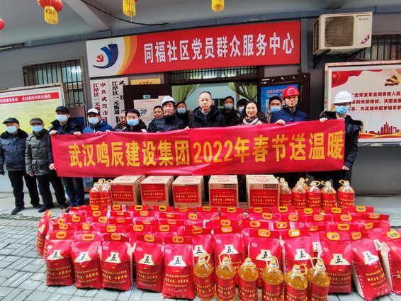 2022年1月17日,武漢鳴辰建設(shè)集團(tuán)有限公司2022年春節(jié)送溫暖活動(dòng)在江岸區(qū)同福社區(qū)舉行。集團(tuán)公司副總經(jīng)理徐建清代表武漢鳴辰建設(shè)集團(tuán)有限公司、湖北鳴辰市政工程有限公司為社區(qū)困難群眾送去慰問(wèn)物資。一元街道領(lǐng)導(dǎo)吳主任及同福社區(qū)余書記及青島路項(xiàng)目部管理人員參加活動(dòng)。