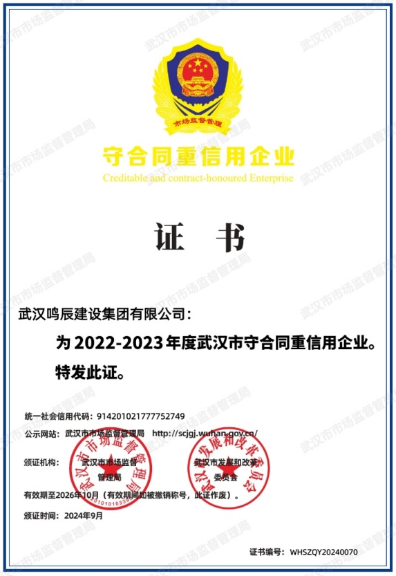 2022-2023年度湖北省/武漢市守合同重信用企業(yè)