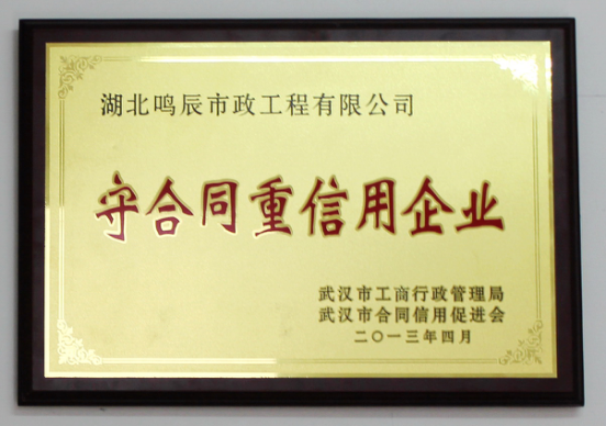 湖北鳴辰市政工程有限公司于2013年4月取得“守合同重信用”稱(chēng)號(hào),這樣的證書(shū)可能對(duì)別的市政公司來(lái)說(shuō)是簡(jiǎn)單的,但對(duì)我公司來(lái)說(shuō)卻意味著一次飛躍,表達(dá)著對(duì)我公司過(guò)去工作的肯定,也對(duì)今后的工作提出了更高的要求。