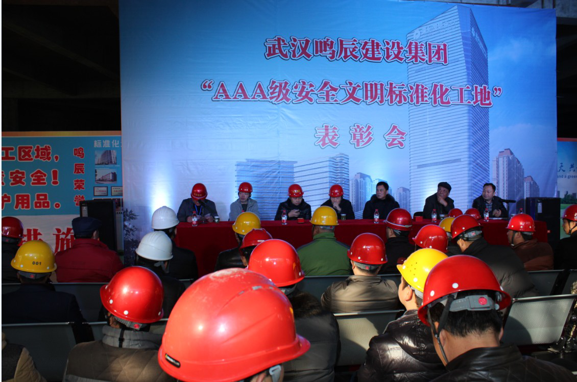 2014年12月12日,在保利時代K18地塊項目現(xiàn)場隆重召開“2014年鳴辰集團(tuán)‘AAA級安全文明標(biāo)準(zhǔn)化工地’表彰會”活動。參加活動的有市區(qū)領(lǐng)導(dǎo)、業(yè)主方代表、集團(tuán)公司領(lǐng)導(dǎo)及集團(tuán)在建工程現(xiàn)場項目經(jīng)理、技術(shù)負(fù)責(zé)人等約60余人。會議由集團(tuán)公司總經(jīng)理張惠忠主持,首先由該項目現(xiàn)場負(fù)責(zé)人陳景做創(chuàng)建工作經(jīng)驗交流,陳經(jīng)理將創(chuàng)杯伊始的各個環(huán)節(jié)的控制配合視頻資料進(jìn)行了簡短的描述,集團(tuán)公司董事長王春才、第二分公司經(jīng)理林育新給予項目部鼓勵和嘉獎,業(yè)主方保利地產(chǎn)也對鳴辰集團(tuán)的付出也給予高度肯定,原武漢市安全協(xié)會會長操賢平對鳴辰集團(tuán)創(chuàng)杯表示祝賀,同時也提出“鳴辰集團(tuán)要進(jìn)一步做大做強(qiáng),首先就要多創(chuàng)精品工程,優(yōu)質(zhì)工程,把自己的品牌和口碑做出去?!?/span>