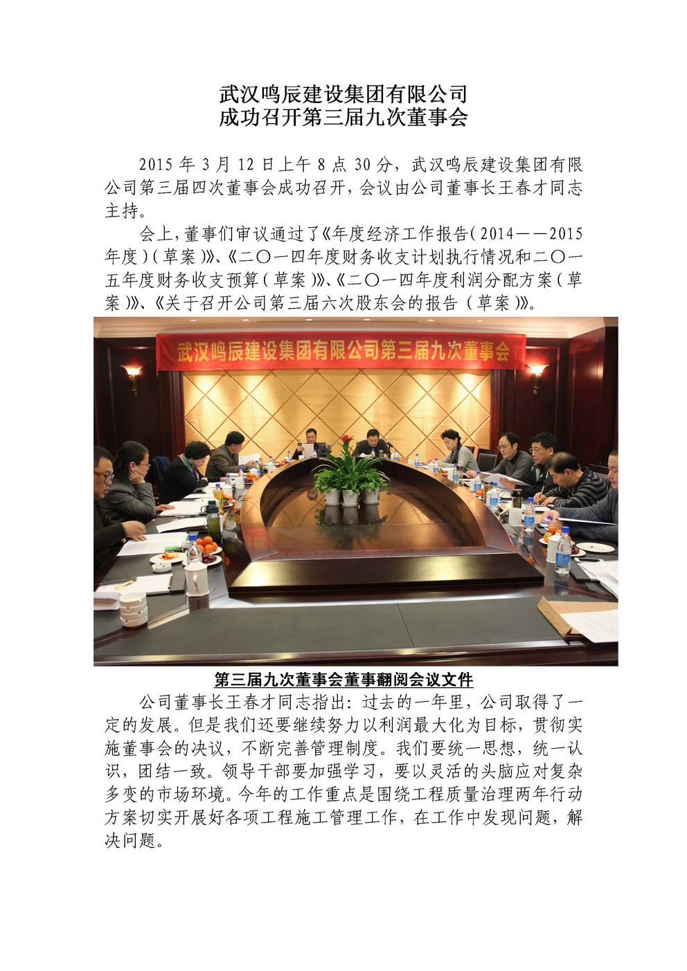 武漢鳴辰建設(shè)集團(tuán)成功召開(kāi)第三屆九次董事會(huì)