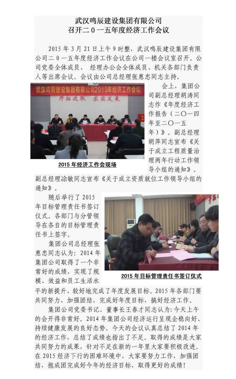武漢鳴辰建設(shè)集團(tuán)召開(kāi)二〇一五年度經(jīng)濟(jì)工作會(huì)議