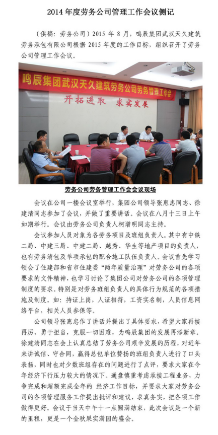2014年度勞務(wù)公司管理工作會議側(cè)記