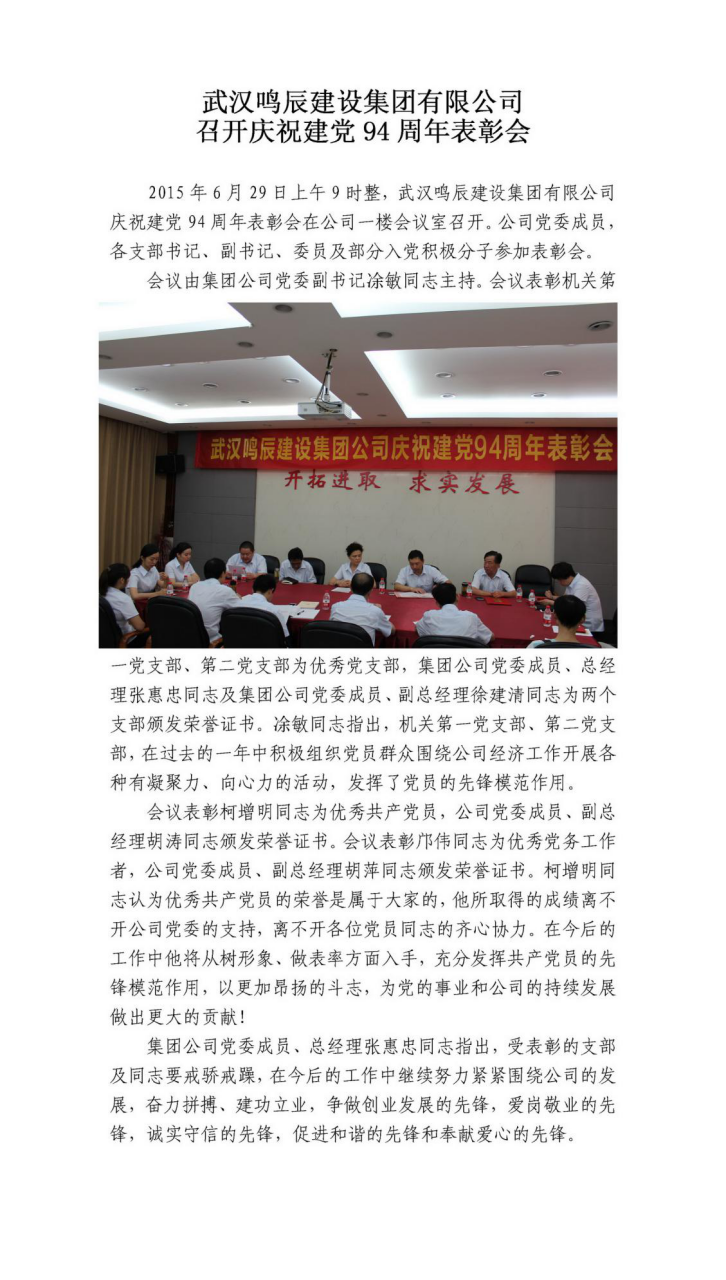 武漢鳴辰建設(shè)集團有限公司召開慶祝建黨94周年表彰會