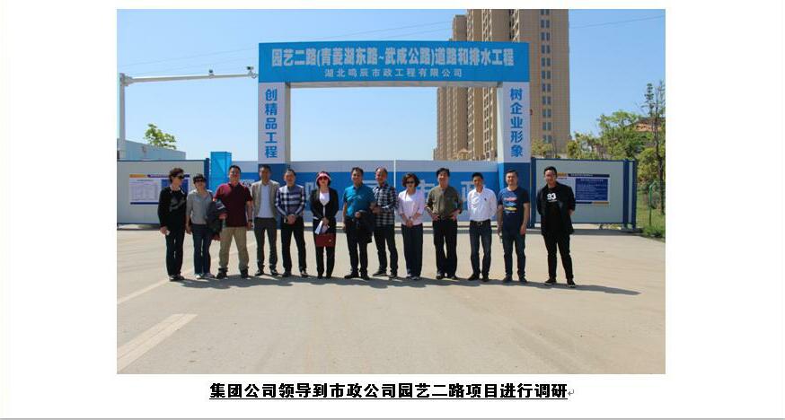 二、集團(tuán)公司董事長王春才、總經(jīng)理張惠忠?guī)ьI(lǐng)全體領(lǐng)導(dǎo)對鳴辰市政公司承建的園藝二路道路和排水工程項(xiàng)目進(jìn)行了調(diào)研。