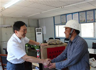 7月11日,集團(tuán)公司總經(jīng)理張惠忠?guī)ш?duì)頂著炎炎烈日,對集團(tuán)公司所屬項(xiàng)目在高溫下不停奮戰(zhàn)的一線建設(shè)工人進(jìn)行了高溫慰問。
