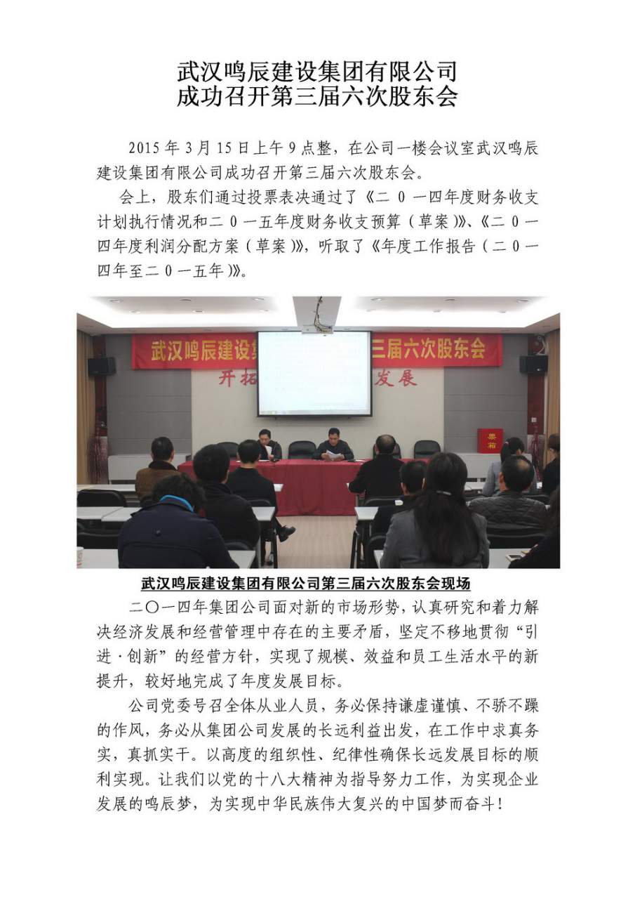 武漢鳴辰建設(shè)集團(tuán)成功召開第三屆六次股東會(huì)